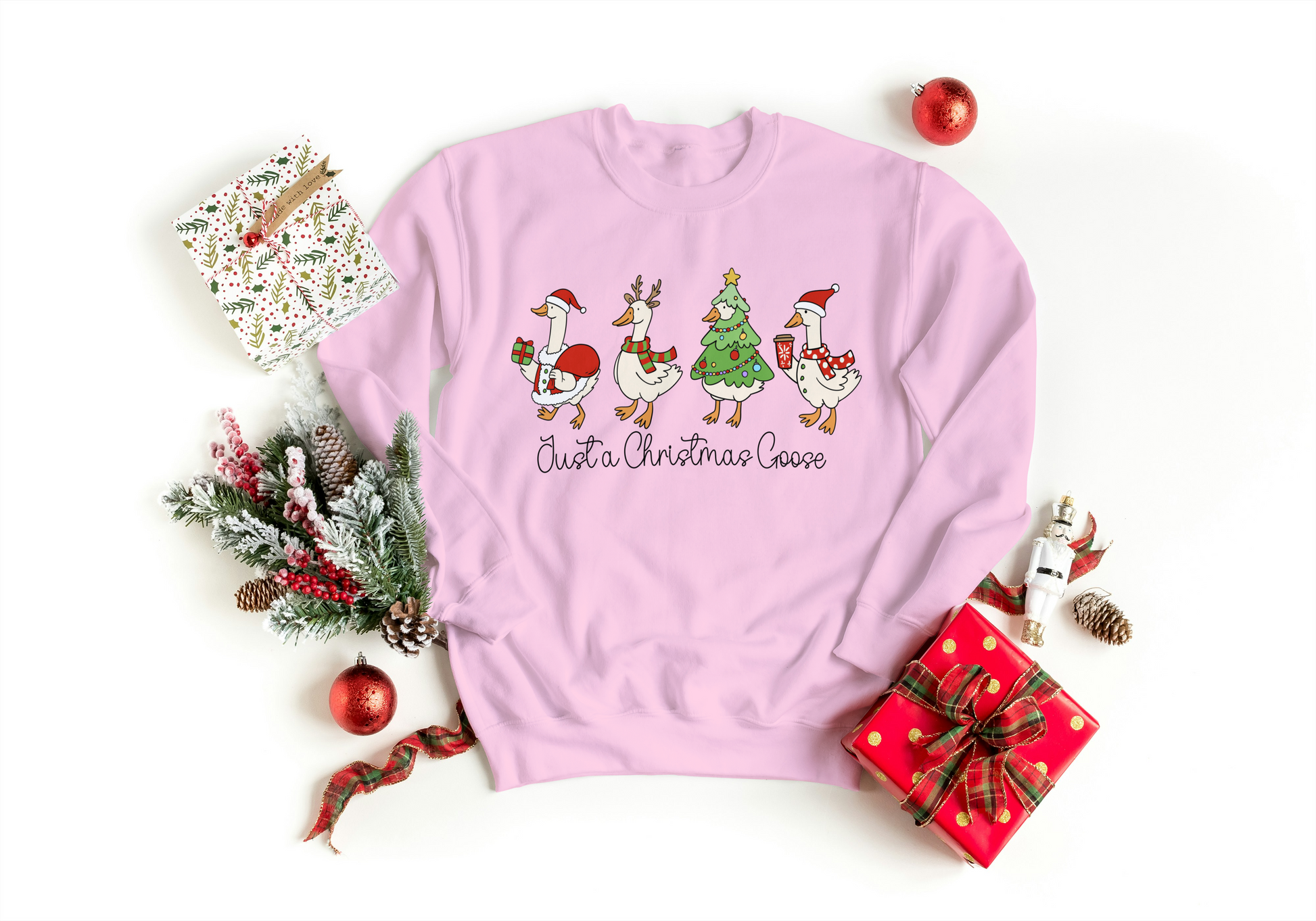Make this Christmas unforgettable with the Just a Christmas Goose Sweatshirt—a must-have for anyone who loves holiday humor with heart. Featuring festive geese, this sweatshirt captures the magic of the season in a way that stands out from ordinary holiday wear. Soft, comfortable, and conversation-starting, it's the perfect gift for the person who appreciates festive fun with personality. Spread joy and laughter this holiday season.